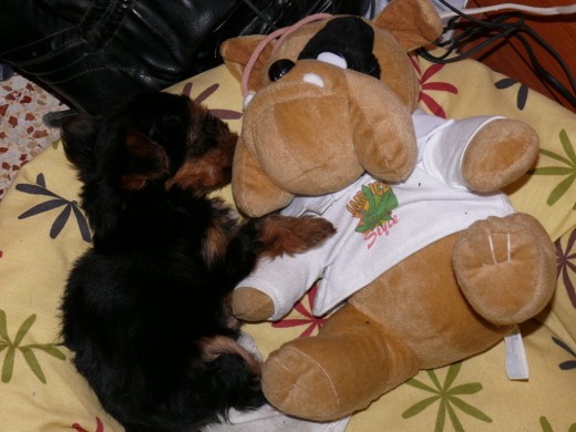 cosa mas mona pasandole la patita encima del peluche ah y una cosa dnys que el peluche es mas grande porque esa raza la del peluche suele ser mas grande casi como la del sambernardo.